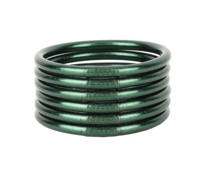 Nature’s greens are captured in BuDhaGirl's Frond AWB, from the deep shades of an emerald forest to the highlights of bright mosses. Frond All Weather Bangles® (AWB®), are the epitome of luxury in BuDhaGirl's impressive lifestyle collection. Our remarkable bangles redefine elegance with their weightless, soundless, waterproof, and TSA-proof design. Crafted to perfection, each set comprises six bangles, symbolizing intentions for the day. Wear them anywhere, as their soundless and waterproof nature ensures seamless integration into any setting.